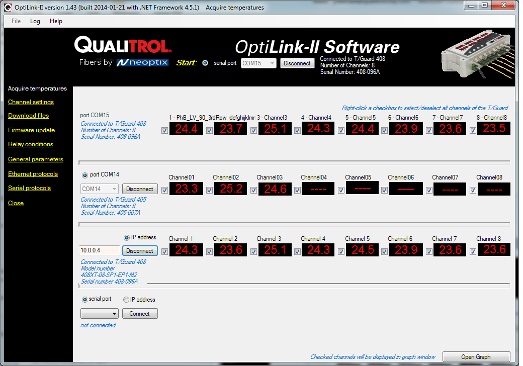 Logiciel OptiLink (Pièce: OPTI-LNK)Un logiciel de contrôle compatible avec Windows, polyvalent et offrant la possibilité d'enregistrer les données. Un excellent complément à votre thermomètre à fibres optiques Neoptix.