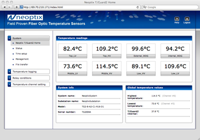 Neoptix T/Guard-2B give the exact temperature of optical probes in 250 milliseconds per channel. Peak load or emergency overloads are thus detected almost instantaneously. With Neoptix technology, you have a new tool to optimize high-voltage transformer performance and life expectancy.